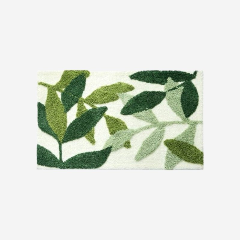 Denna dörrmatta med vackert lövmotiv är designad för att stimulera dina sinnen och skapa en harmonisk miljö. De rika gröna tonerna, från djup skogsgrön till ljus vårgrön, blandas konstfullt för att ge en dynamisk och levande känsla. Det är som att ta in en bit av naturen direkt in i ditt hem. Mattans lugnande mönster bidrar till en avkopplande atmosfär, perfekt för att varva ner i badrummet eller för att sätta tonen för resten av ditt hem redan vid ytterdörren. Dess mjuka lugg känns underbar mot bara fötter, vilket gör den idealisk för badrummet efter en skön dusch, eller som en mjuk landningsplats i hallen.