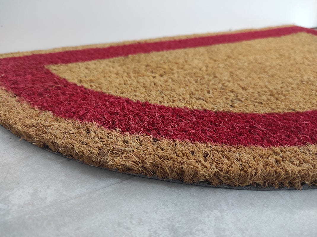 Upplev elegans och komfort med vår Halvmåneformad dörrmatta i kokos. Designad för att ge ditt hem värme och stil, kombinerar den högkvalitativ design med daglig bekvämlighet.